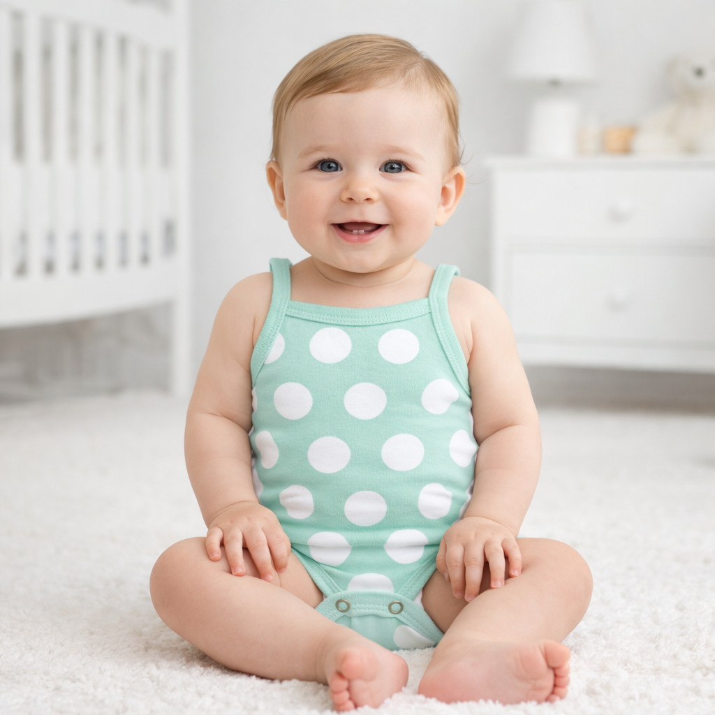 O modelo em alça é perfeito para os dias mais quentes ou para compor looks com sobreposições. Sua modelagem facilita a passagem da cabeça do bebê, tornando o momento de vestir muito mais prático e confortável, sem apertar ou incomodar.