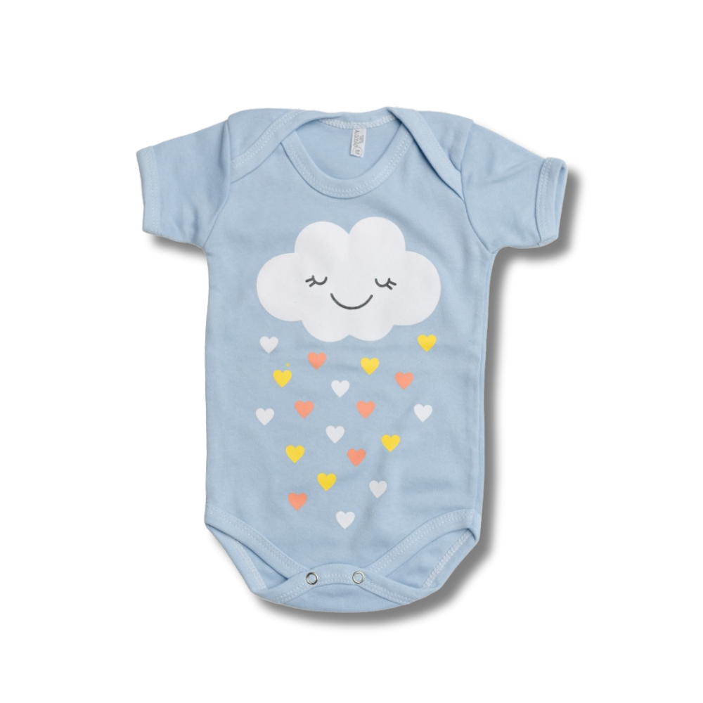 O modelo conta com mangas curtas, sendo perfeito para os dias mais quentes ou para compor looks com sobreposições. O decote transpassado no pescoço facilita a passagem da cabeça do bebê, tornando o momento de vestir muito mais prático e confortável, sem apertar ou incomodar.