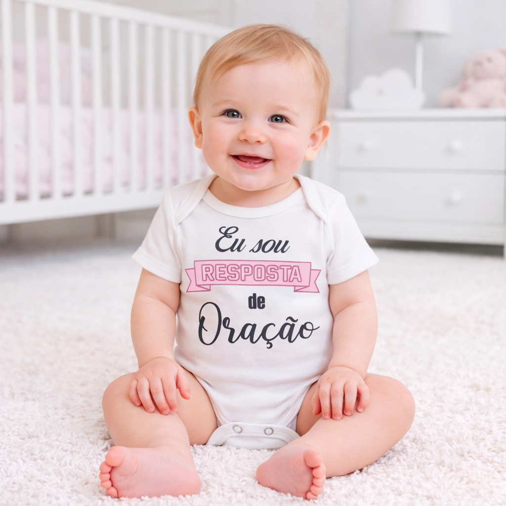 Body Eu Sou Resposta de Oração Rosa
