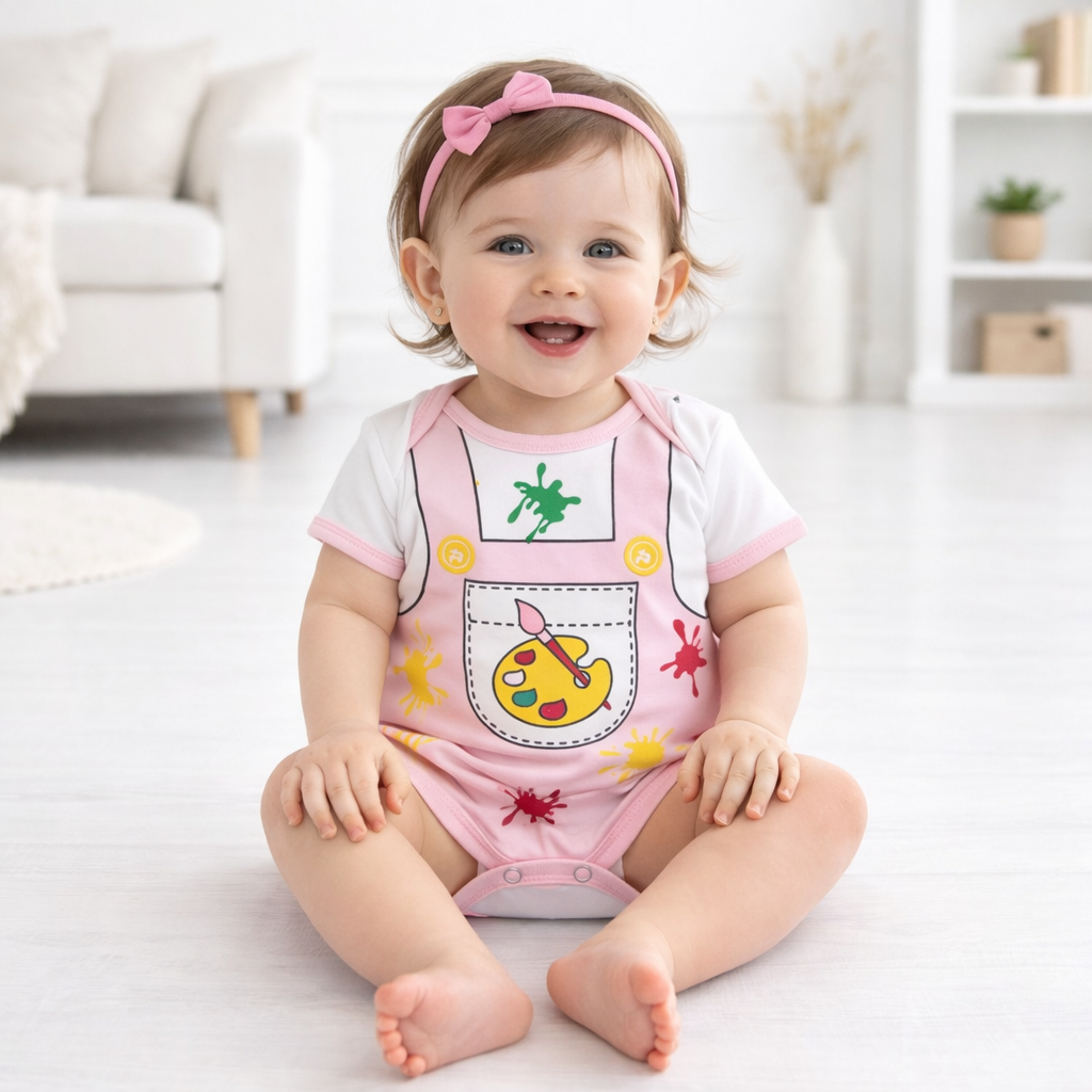 O fechamento entre as pernas com botões de pressão permite trocas rápidas de fralda, trazendo mais agilidade no dia a dia dos pais e cuidadores. O acabamento é reforçado, garantindo durabilidade mesmo após várias lavagens.